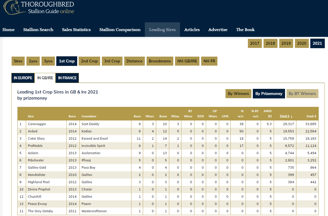 This data supports Dynamic Syndications opinion that CARAVAGGIO would be a commercial success as a sire and already his three winners to date are being touted as Royal Ascot contenders.