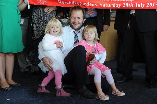 Daddy's horse won ! Part Owner Michael Grogan with his daughters in the Winner's Room at Rosehill enjoying the day - Racing is a family sport !