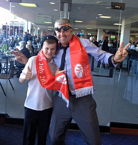 Co-Owner Brad Ball (Brad & Scott Syndicate) & his son enjoy the celebrations
