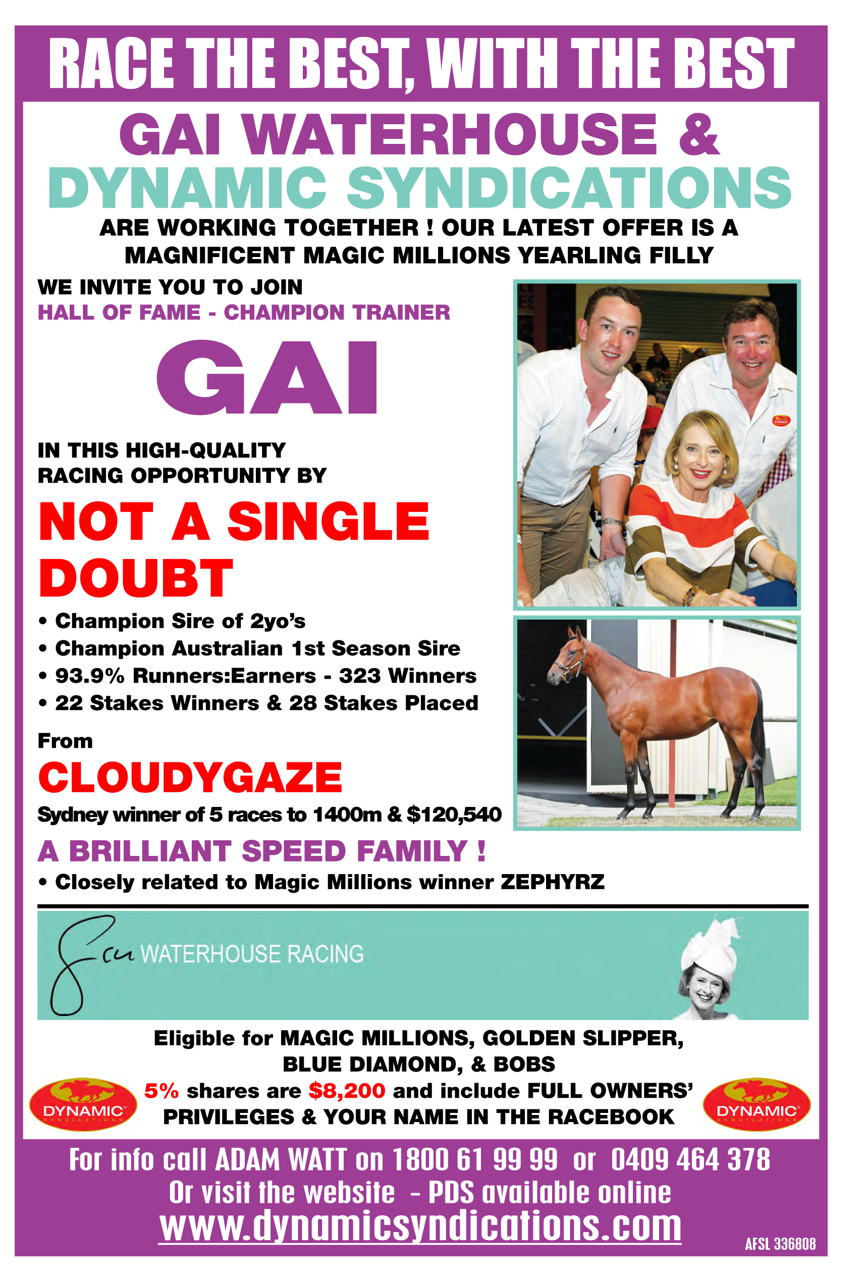 Simply contact the Team at Dynamic Syndications because we are offering shares in a variety of the best bred and best conformed yearlings available in Australia with Australia's best trainer.
