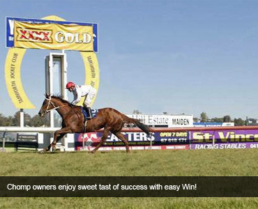 Darren Smith and Dynamic Syndications combined again on Tuesday afternoon recording our 51st win together as a team and Dynamic Syndications recorded our 68th win of the 2011 Calendar Year and Dynamic's 27th win for the Current 2011-12 Racing Season when well bred mare Chomp (Flying Spur / Bouchette) bolted in to scored a very soft 2.8 length win at Tamworth.