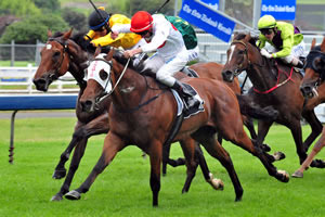 ATOMIC FORCE surges clear to win the Gr1 Railway Stakes at Ellerslie 1-1-12.